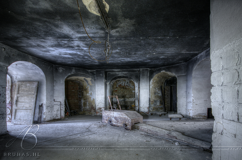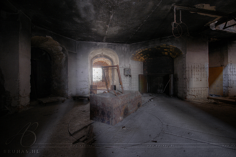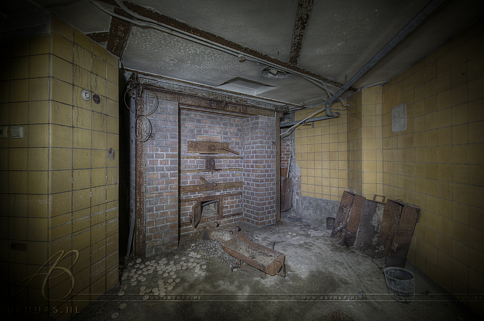 The crematorium was build by an architect from Berlin in 1910.Β It was a modern crematorium which made use of combustion technology, the building was equipped with various storage facilities like an office, a lift and housing with even a bath for the staff.Β Part of the building was fortified and expanded with additional cooling roomsΒ forΒ the deceased.Β The ice that was used to cool the bodyβs was produced in the basement with an ice machine. Over 100,000 people have been cremated and buried here until its closure in 1990. Some of their urns are still in place at the cemetery. The crematorium is now a monumental building.